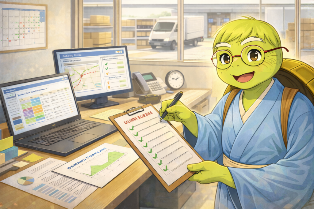 リピート受注の納入管理で重要となるのは、適切な製造手配で「いつ(発行)、いつまでに(納期)、どれだけ(数量)」手配する必要があるか?を 顧客情報に基づく需要見通しや、工場の負荷状況に基づく予想リードタイムなどを考慮して顧客に提案し、発注を頂く必要があります。